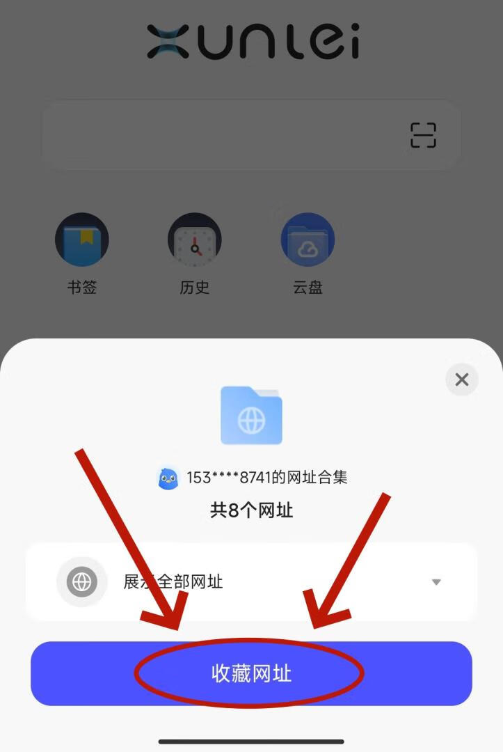 第三步:打开迅雷浏览器自动弹出,然后点击收藏